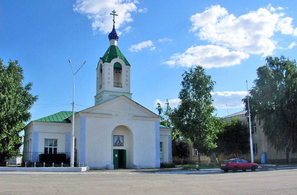 Через полчаса подъезжаем к райцентру Новые Бурасы. По маршрутному листу здесь, на въезде у магазина, будет КП-3. Но магазин, существовавший в прошлом году, исчез. Едем через поселок, приглядывая место для стоянки с магазином или кафе, где можно перекусить и отдохнуть. Городок чистый, ухоженный. После того, как показалась красивая белая церковь на площади, вдоль дороги один за другим пошли магазины.