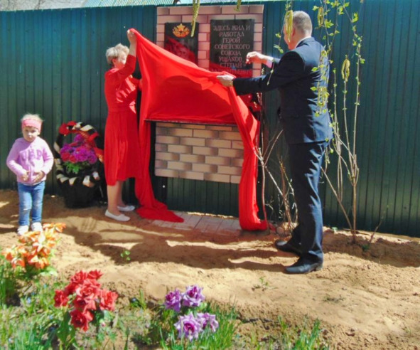 Указом Президиума Верховного Совета СССР от 3 июня 1944 года за «образцовое выполнение боевых заданий командования на фронте борьбы с немецкими захватчиками и проявленные при этом мужество и героизм» старший сержант Степан Ушаков был удостоен высокого звания Героя Советского Союза с вручением ордена Ленина и медали «Золотая Звезда». Главой городского поселения С.И.Колкова к 70-летию Великой Победы было решено – установить новую мемориальную доску у дома Героя. Фото 2015 г.