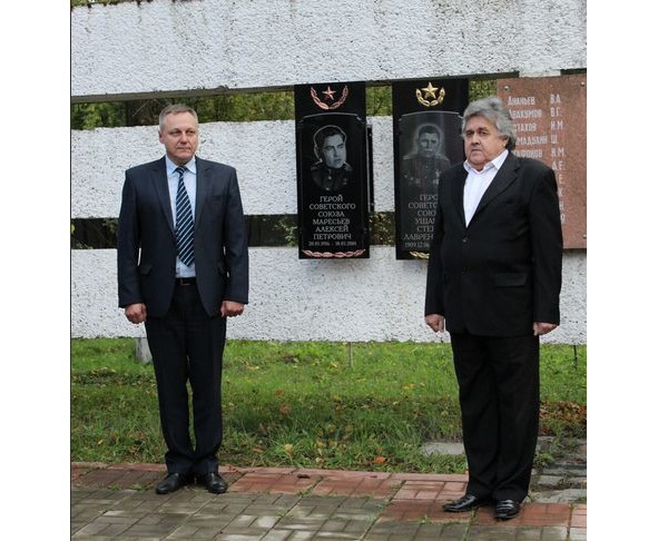 Мероприятия, посвящённые 100-летию А. П. Маресьева, жившего в районе Катуара. Справа – сын героя – лётчика Виктор Алексеевич Маресьев, 2016 г.