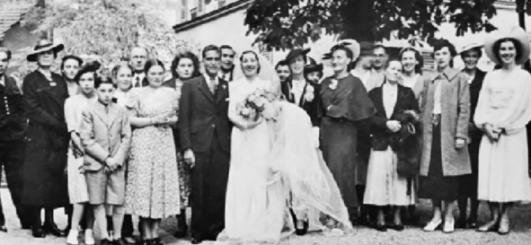Эту фотографию я впервые увидела в Ричфильд Спрингсе (США) в доме А.Ю.Смирновой Марли, разбирая обширный семейный архив Анны Юрьевны. Снимок запечатлел свадьбу ее сестры Марины в 1938 году