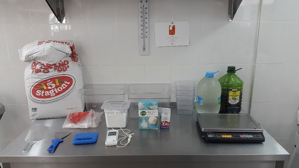 В других случаях, добавление даже дополнительных 1–2 % воды в рабочую рецептуру приведет к значительному улучшению качества теста. Также вид использованной муки является значимым фактором и определяющим элементом типа теста, которое вы хотите выпечь. Так, например, корочка, которую нужно долго жевать, а тесто дольше растягивать – это характеристики теста «Американа», которое требует более сильной муки, чем та, которая применяется для производства теста для неаполитанской пиццы.