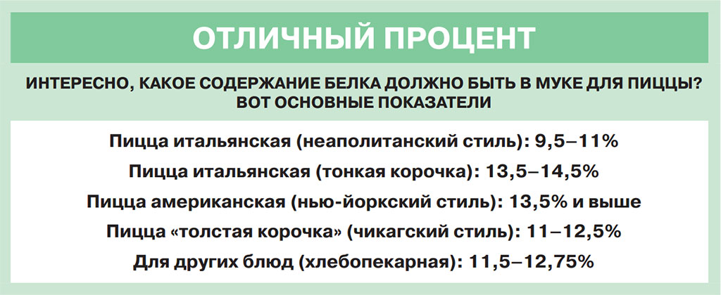 Чаще всего, для приготовления теста и выпечки разных видов американских пицц применяется мука со следующими, более узкими значениями параметров:
