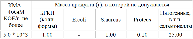 Микробиологические показатели (СанПиН 2.3.2.1078–01)