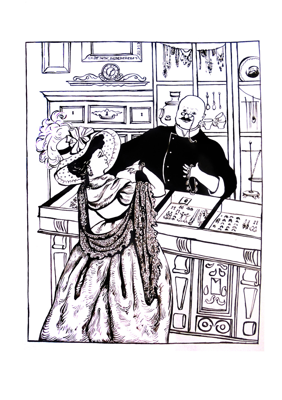 Шо, мадам, как Вам браслет?Да чтоб я так жил!Он понравился княжне?Я же говорил!Посмотрите, как горитВправленный гранат.Не хватает? Уступлю!Буду даже рад.Не желаете взглянуть?Положите глаз!Двадцать два карата здесь,А! Каков алмаз?Будет князь в восторге весь!Я Вам говорю!И на перстень скидка есть —Тоже уступлю!Шо, я Вас уговорил?Милая княжна!Ваш заказ доставят ВамК вечеру, до сна!Вы известная чета,Чтобы я так жил.Расскажите, можно всем,Как я угодил.Через парочку недельЗаходите вновь…Шо, оставите аванс?Вы ж моя любовь!Да, колье только для Вас!Чтоб мы все так жили!И почаще к ювелируС князем приходили!