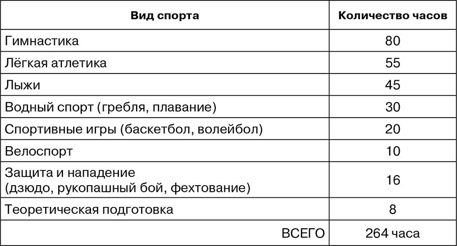 Таблица 2. Распределение часов, рекомендованное «Программой по физической культуре для вузов» 1937 г.[15]