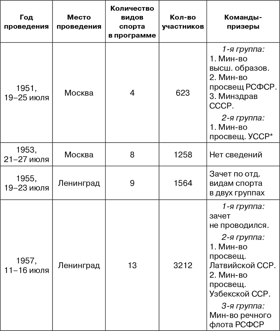 Таблица 3. Всесоюзные студенческие спартакиады