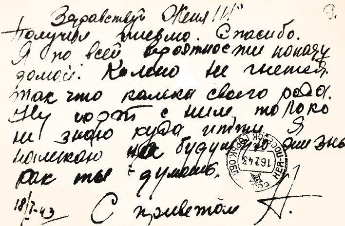 Письмо А. Н. Яковлева о своем ранении и возвращении домой