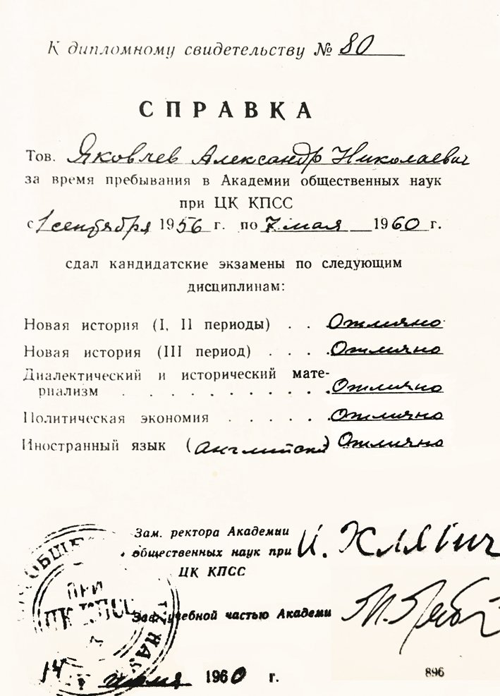 Он ни на йоту не сомневался в верности социалистического курса, продолжал считать советское общество самым справедливым на земле, а свою принадлежность к коммунистической партии величайшей драгоценностью. Но вопросы возникали. И в поисках ответов на них Яковлев сел за академическую парту.