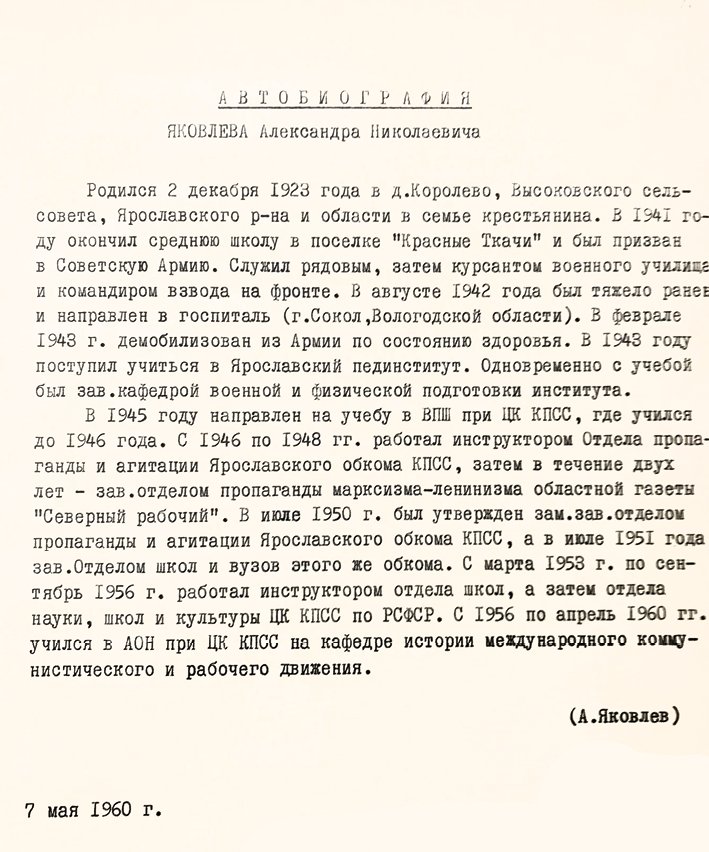 Альманах «Россия. ХХ век». А. Н. Яковлев. 1956–1960. Документ № 6.
