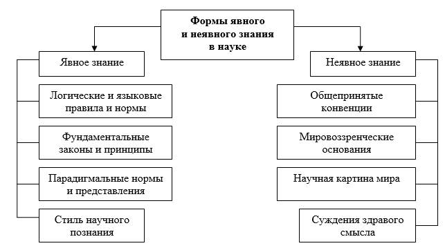 Однако, как показано на рис. 1, знания могут быть явными (подлинными, научными) и неявными (предположительными).