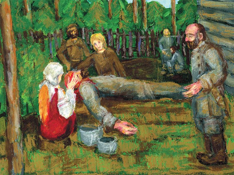 – Да кто знает, тетка! Взяли их врасплох, с озеру, на лодках. Шибко-то и драки не было. Одного нашего только что убило да трое аль четверо ранено. У них одному прямо на постеле голову ссекли – вроде атаман был. Одного с лодки сняли, вблизь берегу лежит. Одного повесили. Одного, вроде, недалеко от заимки стрельнули. Еще несколько в срубе сгорели. Да еще одного живьем взяли, сейчас водой в Олонец в острог повезут. Этот лысый прыткий был, долго его ломали. Пытать будут на дыбе да потом, поди, и голову срубят, чтоб другим неповадно было воровать.