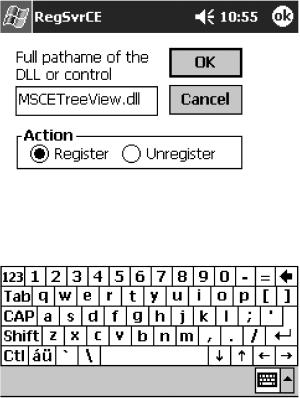 ♦ После того, как программа RegSvrCE.exe и библиотека с компонентом, который необходимо установить, будут скопированы на целевое устройство, необходимо запустить программу RegSvrCE.exe. На экран будет выведено диалоговое окно, внешний вид которого показан на рис. 3.26.