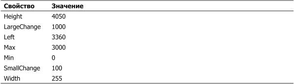 11. HScrollBar. Компонент реализует горизонтальную полосу прокрутки. Используется для установки или для индикации значения, которое может плавно изменяться в широких пределах. Свойство Max позволяет задавать максимальное значение, которое может принимать свойство Value. Оно соответствует крайнему правому положению движка компонента. Свойство Min устанавливает минимальное значение, которое может принимать свойство Value. Свойство Value хранит значение, соответствующее текущему положению движка полосы прокрутки. Свойство LargeChange содержит значение смещения, которое соответствует большому шагу движка, при щелчке стилусом на полосе прокрутки. Свойство SmallChange соответствует малому шагу движка при нажатии стилусом на кнопке со стрелкой на полосе прокрутки. Кроме этого, для передачи значений от компонента Scrollbar в настраиваемое свойство используют события Scroll (происходит при перемещении движка) и Change (происходит при перемещении движка или изменении свойства Value программным путем).