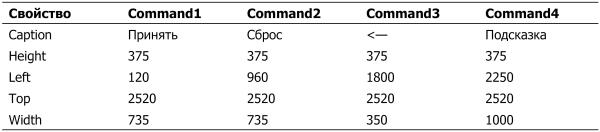 Таблица 3.9. Значения свойств компонентов Command1, Command2, Command3 и Command4