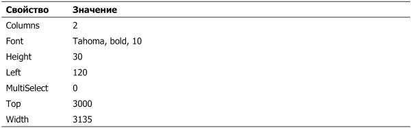 6. Добавить к проекту компонент ListBox. Значения свойств этого компонента приведены в табл. 3.10.