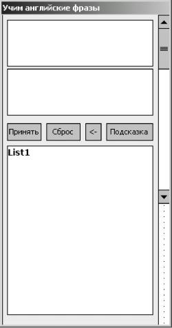 2. Установить для свойства формы Caption значение Учим английские фразы, а значение свойства Height нужно сделать равным 7050. Такая длинная форма нужна для того, чтобы посмотреть, как работает компонент VScrollBar.