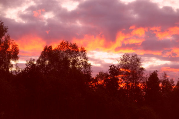 К закату солнца рыбы для ухи, не смотря на весьма вялый клёв, наловилось достаточно, и уж было мы стали собираться к уходу на место нашей лесной стоянки, как вдруг, за отливающим блеском заката, бочагом, заметили плывущую утку с большим выводком позади.