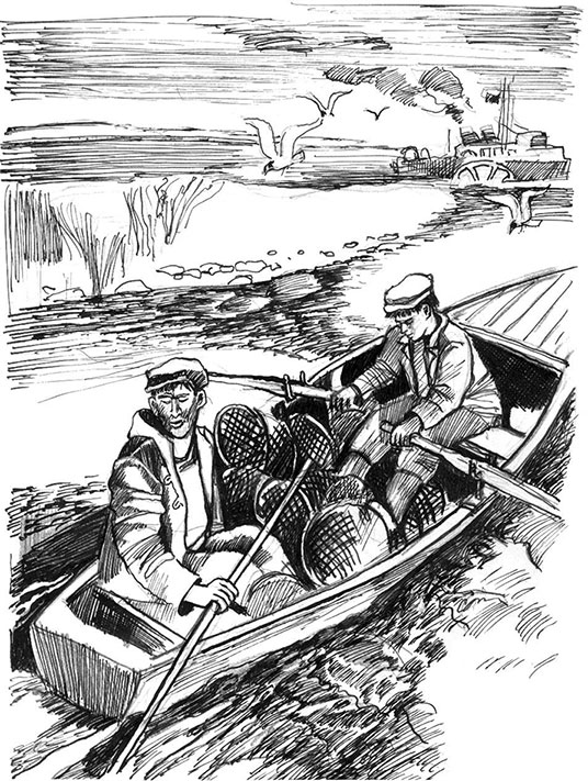 К деревне мы подплывали одни. Лодки больше не обгоняли нас: все давно возвратились. Подавленные и усталые, мы скреблись возле самого берега. Отец подталкивался шестом. Хотелось есть… Есть хотелось всегда, мы, мальчишки, к этой мысли давно привыкли – ведь шла война. Я грёб, взглядывал на отца, и невесёлые думы шли на ум: «Возьмут ли теперь его, однорукого, в рыбацкую артель? Матери тоже нельзя… Она в войну набродилась в худых сапогах – теперь ревёт от ревматизма. А мне?.. – мне надо в школу… Из-за войны и так пропустил год – хожу только в третий класс…»