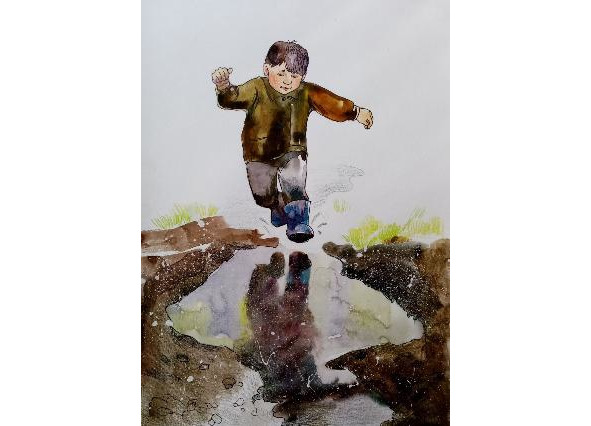 Но оглянувшись, малец не увидел никого: « Никто не увидит – значит и ругать некому! А если бежать навстречу ветру, да так, чтобы он свистел в ушах, то вся вода высохнет и мама ничего не узнает.» И как от укола шилом он, подпрыгнув, разбежался…