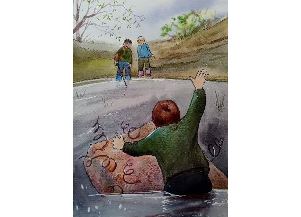 А тот, почувствовав опору, перестал суетиться и, наконец, смог освободить ноги. Выбираясь на берег, мокрый и униженный он хныкал, обидевшись на товарищей и грозил им расправой, как вдруг резкий окрик пригвоздил его к месту: