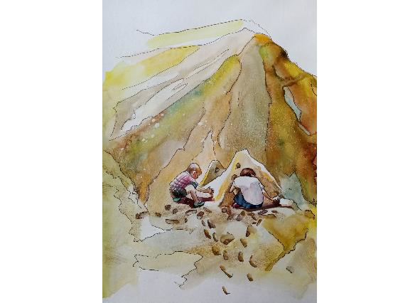 Некоторое время он пыхтел в гордом одиночестве. Но когда почти готовая сторожевая башня в середине ограды развалилась, из – за того, что Вова стал копать проход в центре уже возведенного строения, на помощь пришел Антон, со своим оригинальным решением.