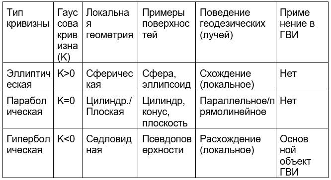 Сравнительный анализ показывает, что именно поверхности с отрицательной Гауссовой кривизной (K <0) обладают уникальными свойствами, чрезвычайно важными для ГВИ: