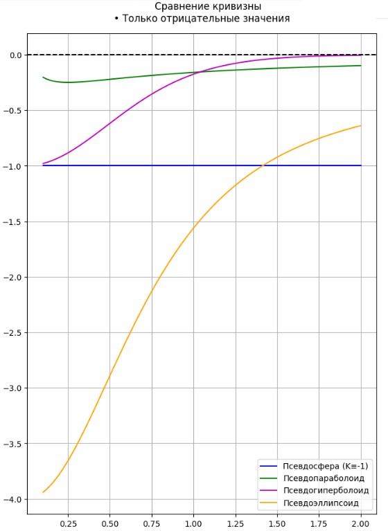 Рис. № 3. Сравнительные кривизны всех псевдоповерхностей
