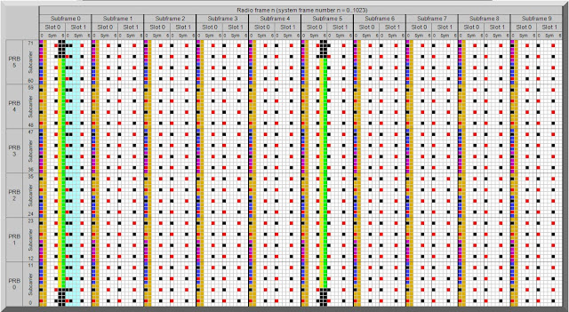 На рисунке 14 приводится пример расположения синхронизирующих последовательностей в кадре (PSS – зеленая, SSS – желтая).