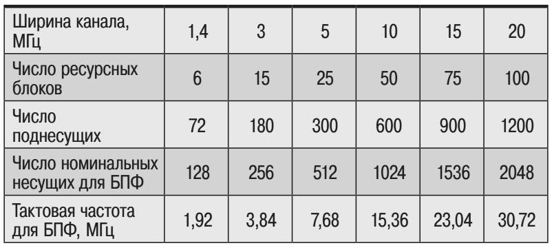Максимальное количество доступных ресурсных блоков зависит от выделенного системе диапазона частот, значение которого может доходить до 20 МГц, однако на краях выделенного диапазона предусмотрены защитные интервалы, которые не используются для передачи информации. Так, при выделении системе LTE полосы в 10 МГц реально будет использоваться только 9 МГц, что соответствует 50 ресурсным блокам.