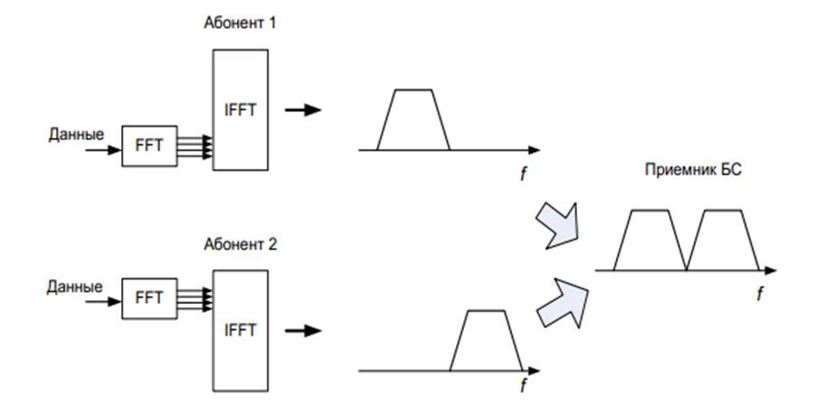 Основной недостаток технологии OFDMА – высокое соотношение пиковой и средней мощности сигнала (PAR). Это связано с тем, что во временной области спектр OFDM-сигнала становится аналогичным гауссову шуму, характеризующемуся высоким PAR. Кроме того, сама по себе технология OFDMА, с учетом необходимости минимизировать шаг между поднесущими и сокращать относительную длительность СР, предъявляет очень высокие требования к формированию композитного сигнала. Мало того, что частотные рассогласования между передатчиком и приемником и фазовый шум в принимаемом сигнале могут привести к межсимвольной интерференции на отдельных поднесущих (т.е. к интерференции между сигналами различных абонентских каналов). При малом шаге между поднесущими к аналогичным последствиям может привести и эффект Доплера, что очень актуально для систем сотовой связи, предполагающих высокую мобильность абонентов. В связи с этим для восходящего канала LTE была предложена новая технология – SC-FDMA (Single-Carrier Frequency-Division Multiple Access).