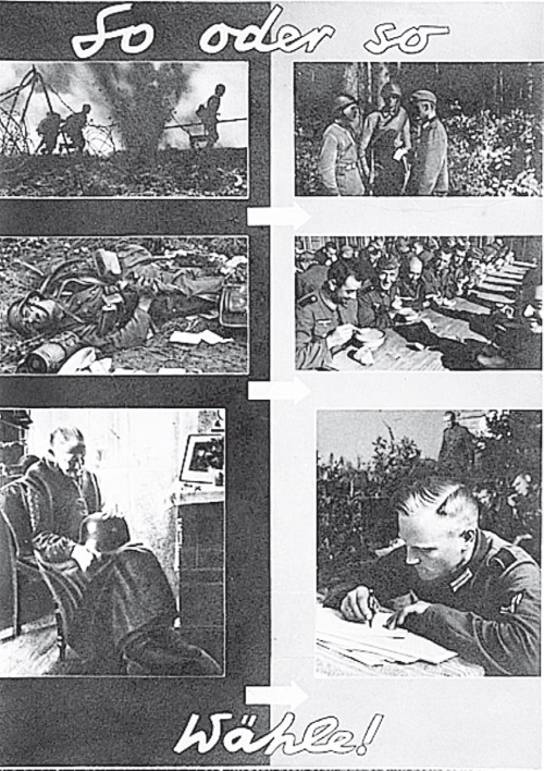 Продолжая делать журнал «Фронтовая иллюстрация» для нашей армии, маленький коллектив теперь готовил и издания для немецких солдат – помимо Front-Illustrierte еще и Freies Deutschland in Bild. Отдельные номера Front-Illustrierte выходили на итальянском, финском, венгерском. А еще делали фотогазету и листовки о героях войны на русском языке для наших и – важнейшая вещь! – контрпропагандистские листовки на немецком с фотомонтажами А. Житомирского.