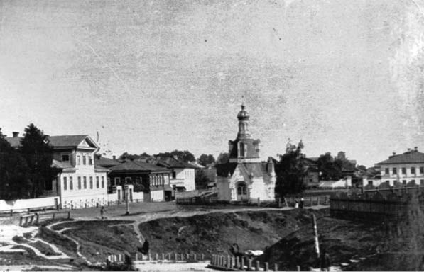 Начало Раздерихинского оврага и каменная часовня, выстроенная во второй половине XIX века вместо обветшавшей деревянной Старинная фотография