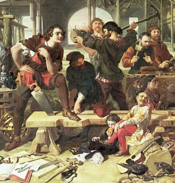 А русский плотник-царь Пётр тем временем, в свободное от работы время (а работать он начал 19 августа), осматривал фабрики, мельницы и мастерские в Заандамском районе. Бывал у местных жителей, особенно в семьях, члены которых работали в России. Все ему нужно было видеть, обо всем узнать, как и что делается: однажды на бумажной фабрике не утерпел, взял у работника форму, зачерпнул из чана массы – и вышел отличный лист; по началу любимая забава Петра Михайлова была катание на ялике, который купил на другой же день по приезде в Зандам. Пётр Михайлов очень желал освободиться от порока водобоязни. Несмотря на необыкновенную твёрдость воли он не был ещё вполне убеждён в победе, одержанной над собою относительно врождённого отношения его к воде. Своим поведением и видом, не идущими к простому плотнику, – хотя своею красною фризовою курткою и белыми холстинными штанами он нисколько не отличался от обыкновенных работников, Петр сейчас же выдал себя: заговорили, что это не простой плотник. Четыре месяца с половиною жил Петр в Голландии: фрегат, заложенный им, был уже готов к спуску. Плотники разбирали мало-помалу колоссальные леса, служившие подпоркой огромному остову, покоившемуся кормой на брёвнах, носом же обращённому к морю, на котором вскоре он должен был начать свою бурную жизнь. Большинство строителей корабля, включая Фёдора Кобылина, решились спуститься на нём со стапеля, собравшись на палубе. Конечно и царь Пётр не хотел отстать от других в этом отношении. Кобылин заранее предупредил Петра Михайлова, что не каждый корабль сходит благополучно со штапеля и что носовую часть, быстро погружающуюся в воду, часто волны накрывают до колен, находящихся на палубе. Спуск прошёл благополучно, к пущей радости строителей, местных плотников, волонтёров и Петра. На Ост-Индской верфи, отдав себя с прочими волонтёрами в научение корабельной архитектуре, государь в краткое время обучился всему тому, что подобало доброму плотнику знать, своими трудами и мастерством новый корабль построил и на воду спустил. Потом просил той верфи мастера Яна Поля, дабы учил его препорции корабельной, который ему через четыре дня показал. Но понеже в Голландии нет на сие мастерство совершенства геометрическим образом, прочее же с долговременной практики, о чем и вышереченный мастер сказал, что всего на чертеже показать не умеет, тогда зело ему стало противно, что такой дальний путь для сего восприял, а желаемого конца не достиг.