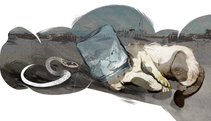 Он положил голову на сено и чуть приоткрыл пасть – и маленькая змейка проворно туда юркнула.