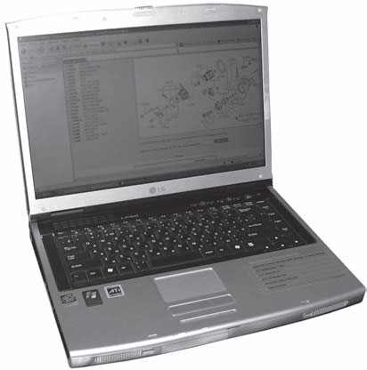 Условно ноутбук состоит из основной части и дисплея. Дисплей ноутбука крепится на шарнирах и может открываться на произвольный угол. В некоторых портативных компьютерах реализован механизм, позволяющий поворачивать дисплей в двух плоскостях. Чтобы открыть дисплей (он же служит крышкой ноутбука), необходимо сместить защелку (нажать кнопку), расположенную, как правило, на переднем торце ноутбука. Иногда таких защелок две. Далее следует, не прикладывая особых усилий, открыть крышку на нужный вам угол. Впрочем, это, наверное, знают все (рис. 1.1).