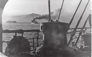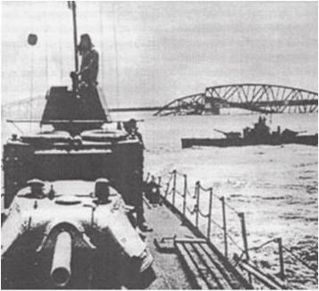 Бронекатера Дунайской флотилии у Эстергомского моста, март 1945 года