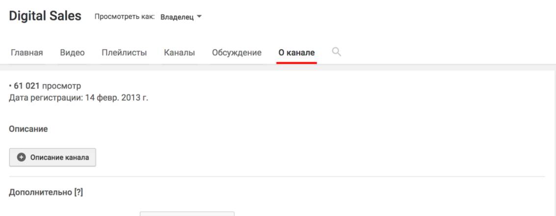 Проработка страницы канала. Необходимо вбить ключевые слова канала в настройках и на странице о канале, далее текстом заполните страницу «о канале».