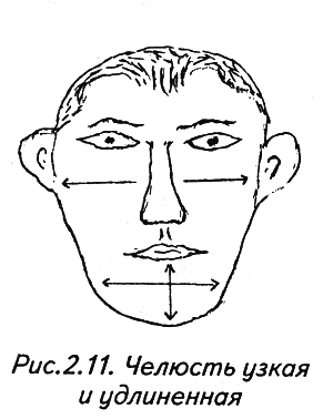 ВАРИАНТ В: ЧЕЛЮСТЬ УЗКАЯ И УДЛИНЕННАЯ, то есть узкая и тяжелая. Внешне напоминает выступающий к доле внушительный челюстной «мыс» (см. рис. 2.11).