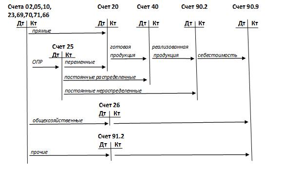 При этом для большей достоверности синтетический учет прямых расходов обычно ведется на соответствующих изготовлению конкретных видов продукции субсчетах счета 20. По дебету таких субсчетов отражается использование прямых расходов, которые как переданные в производство списываются по кредиту счета (субсчета), предназначенного для учета поступления соответствующих элементов затрат.