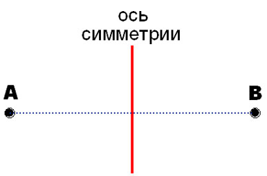 Точки А и В называются симметричными относительно оси. Плоская фигура симметрична относительно прямой (оси симметрии), если ее точки попарно обладают указанным свойством.