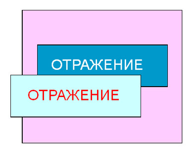 Чтобы понять секрет, нужно немного усложнить приготовления: вырезать буквы слова ОТРАЖЕНИЕ из цветной бумаги, одна сторона которой, например, красная, а обратная сторона белая, и приклеить их на прозрачную пленку.