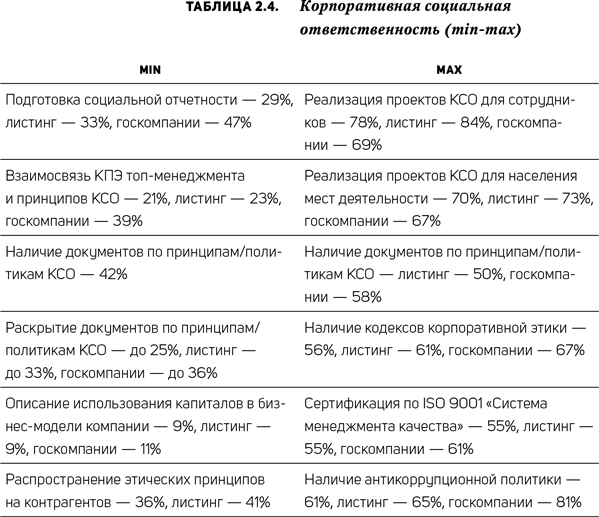 Данный компонент практики корпоративного управления в исследовании охватывает 13 рекомендаций CGBP. В табл. 2.4 представлены результаты анализа в формате min-max.