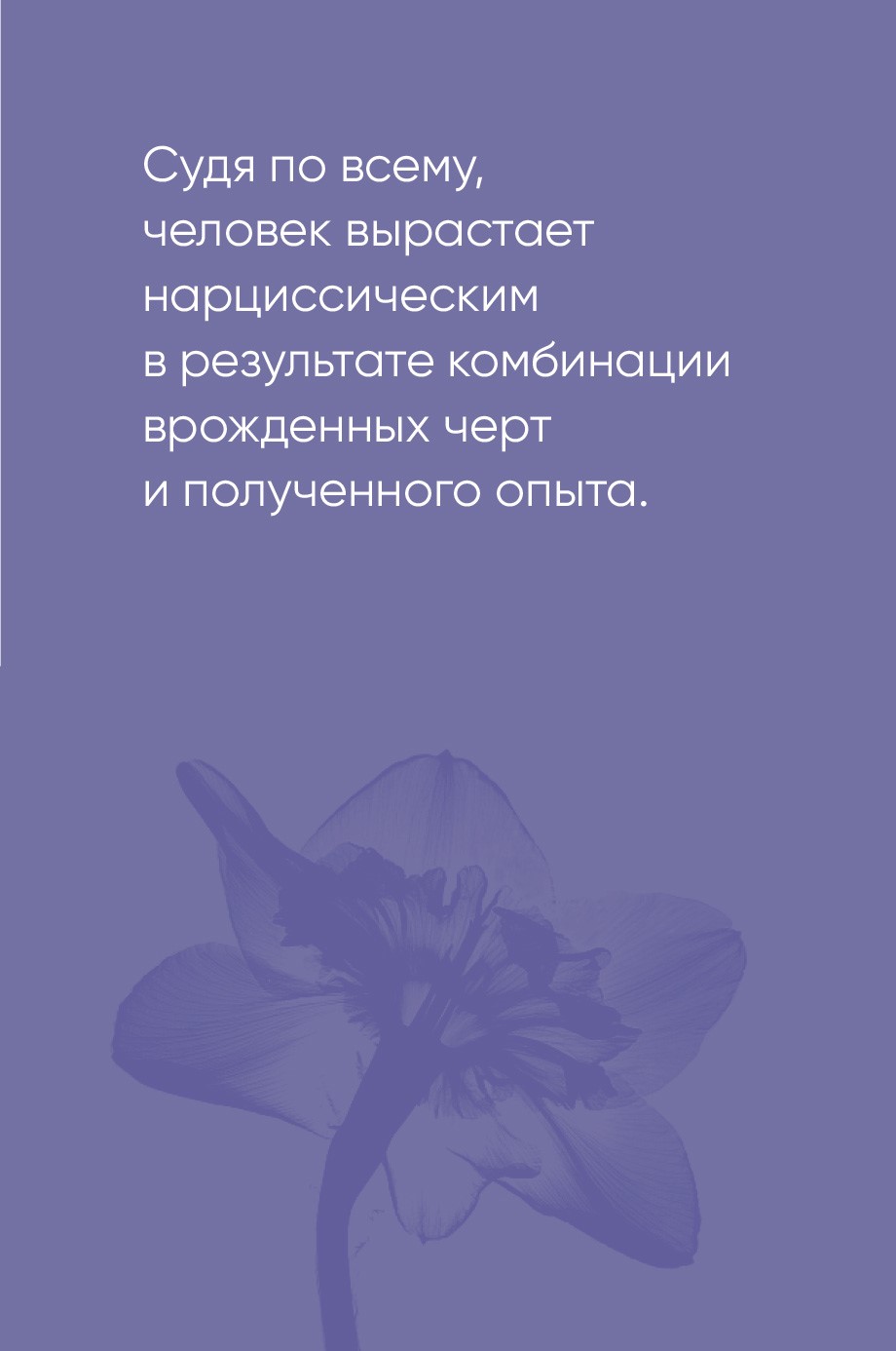 Судя по всему, человек вырастает нарциссическим в результате комбинации врожденных черт и полученного опыта. Один из возможных механизмов, описываемый психотерапевтами, таков.