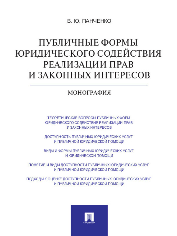Владислав Юрьевич Панченко Публичные формы юридического содействия реализации прав и законных интересов. Монография