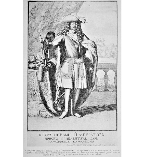 Первый гравированный портрет Петра работы Шхонебека, 1703—1705 гг.