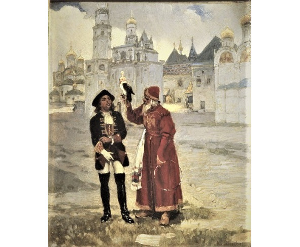 Пётр I и сокольничий. Худ. К. Лебедев