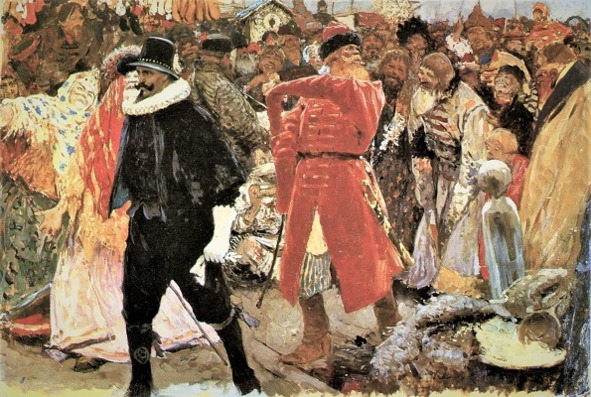 Далее наш историк уточняет: «…Иногда здесь появлялся и степенный шотландец, пожилой, осторожный и аккуратный генерал Патрик Гордон, наёмная сабля, служившая в семи ордах семи царям, по выражению нашей былины. Если иноземцев принимали в компанию как своих, русских, то двое русских играли в ней роли иноземцев. То были потешные генералиссимусы князь Ф. Ю. Ромодановский, носивший имя Фридриха, главнокомандующий новой солдатской армией, король Пресбургский, облечённый обширными полицейскими полномочиями, начальник розыскного Преображенского приказа, министр кнута и пыточного застенка, «собою видом как монстра, нравом злой тиран, превеликий нежелатель добра никому, пьян по вся дни», но по-собачьи преданный Петру, и И. И. Бутурлин, король польский или по своей столице царь Семёновский, командир старой, преимущественно стрелецкой армии, «человек злорадный и пьяный и мздоимливый».