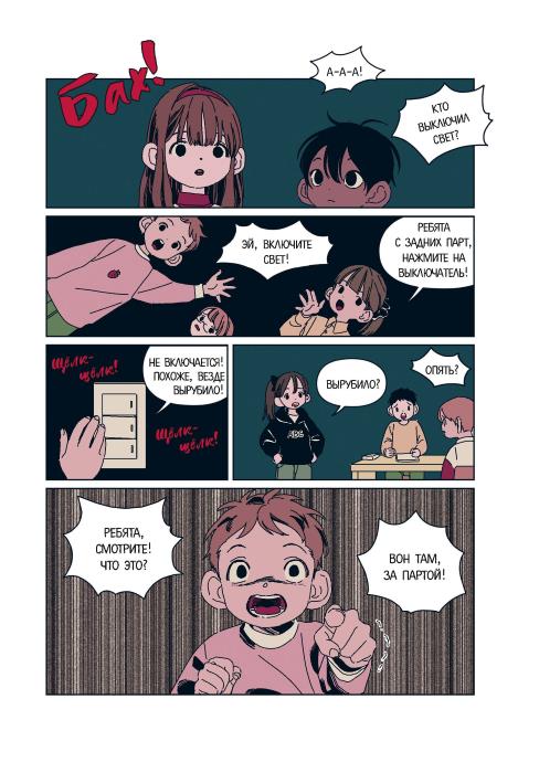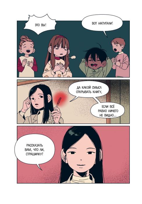 Учительница не рассказывала о призраках, девятихвостой лисе-оборотне кумихо или духе природы токкэби. Её истории были, например, о роботе Пьеро, похищающем людей, чтобы поиграть с ними в куклы. Или о про`клятом лазере, который ровно в полночь начинал прожигать всех красным лучом. Волосы дыбом от таких рассказов, конечно, не вставали, но всё равно становилось немного не по себе.