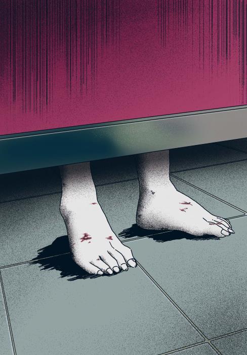 Во рту у Мии пересохло. Она наклонилась поближе к двери. В этот момент дали свет. Яркая вспышка озарила уборную. И тут на сером кафельном полу девочка увидела ноги. Белые-белые пальцы, пятки, лодыжки. Ногти на пальцах были длинные, и все ноги покрывали мелкие царапины. Мии на мгновение стало жутко. Но затем она нахмурилась, глядя на эти босые ноги – даже без носков, не говоря уже о сменке!