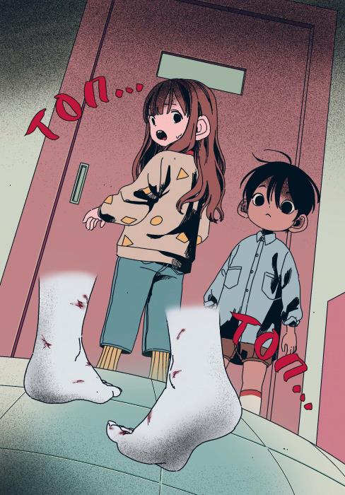 Позади, в темноте, слышался гул одноклассников. Казалось, они остались где-то очень далеко. Вдруг Мия разглядела кого-то впереди. Судя по всему, этот кто-то шёл в туалет, и девочка последовала за ним. Кофта в голубую полоску – да это же староста! Мия хотела её окликнуть, но не смогла раскрыть рта. Так и не заметив одноклассницу, староста скрылась в туалете.